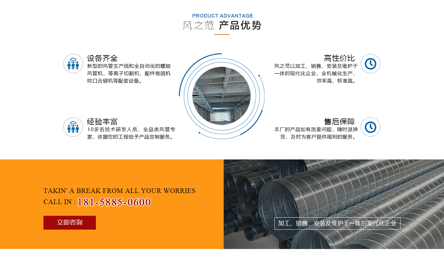 安徽風之范通風設備有限公司,是北京恒通偉業(yè)通風設備有限公司再創(chuàng)的新臺階,多年來,公司員工憑著“誠信敬業(yè)、團結拼搏、勇于開拓、務實進取”的企業(yè)精神,先后承接了多項重點工程項目,使公司健康穩(wěn)步發(fā)展。現由于公司的壯大,業(yè)務的拓展,又于2016年底,成功坐落于安徽省合肥市包河區(qū)。本公司生產設備精良,技術力量雄厚,質保體系完善!讓用戶體驗到,貼心的服務,無憂的售后!風之范是以加工、銷售、安裝及維護于一體的現代化企業(yè),同時以“創(chuàng)未來之風、營誠信之范”為核心理念,面向全國各省市,大量生產鍍鋅板、不銹鋼、玻璃鋼、酚醛復合等通風管道、螺旋風管、廚房排煙罩、油煙凈化器、各種風機風柜、風口風閥、靜壓箱等配件設施。廣泛承接商場、工廠、酒店、寫字樓、地下室等,消防排煙工程、除塵凈化工程、室內通風工程、暖通空調工程、廚房排煙凈化工程。我們力求上進,追求,歡迎各界人士技術指導,經濟合作,共創(chuàng)美好明天!
